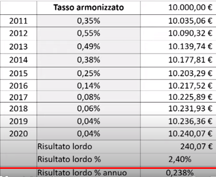 Dopo 9 anni sul conto hai guadagnato 240€ su 10.000€